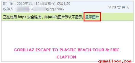 若邮件中含有http的资源如图片,因为https保护下,会要求这个页面的内容皆来自于安全的域,因此https模式下会默认不显示,并在邮件上方出现小绿条。点击“显示图片”可把图片显示出来。