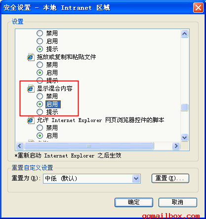 如需要不再显示此提示,请在工具-Internet选项-安全-自定义级别的其他子项中,勾选“启用”显示混合内容。如下图: