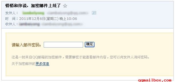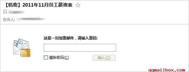 对于企业邮箱,或QQ邮箱的用户,点击邮件时会进入一个解密页面,输入邮件密码后即可查看邮件内容。解密后若有退出邮箱、清除浏览器cookie等操作,再次阅读邮件时需要重新输入密码。