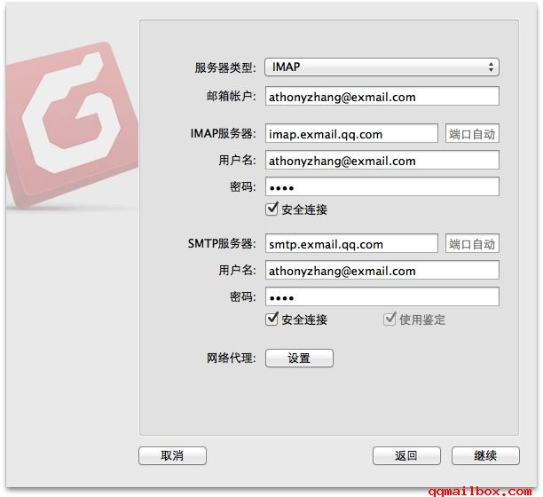 IMAP服务器:imap.exmail.qq.com