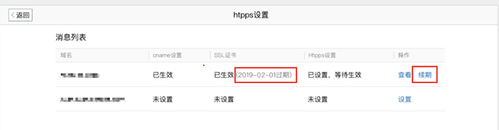 已申请成功的HTTPS证书可支持免费续期,请在到期前一个月前往管理端免费续期。 续期操作流程: 一、申请成功HTTPS证书在到期前30天、15天和5天分别有证书续期通知; 二、收到通知后,可以前往腾讯企业邮的管理后台->增值服务->HTTPS设置的首页点击续期,续期跟首次申请都是免费的,证书续期大约60分钟,续期过程不影响证书使用; 三、续期成功之后,可以在首页查看SSL证书的到期时间。