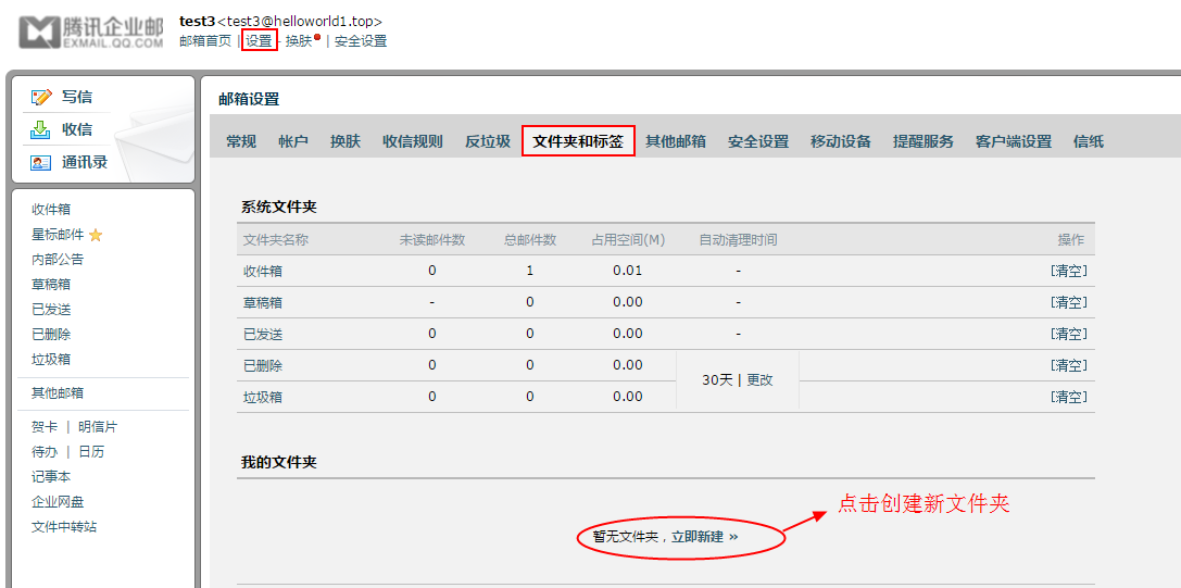 (3)邮箱 “设置”-》“文件夹和标签”设置页。