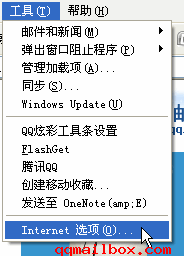 - 在 Internet Explorer™ 菜单中的 工具 > Internet选项 打开选项窗口:
