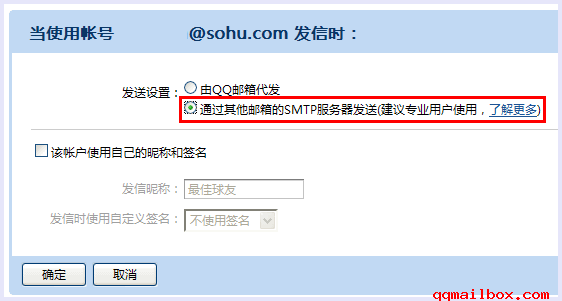 设置由其他邮箱的SMTP服务器代发,邮件将会由QQ邮箱转交给您其他邮箱的SMTP服务器,再由它发送。