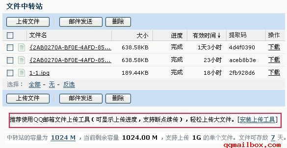 当您在进入文件中转站界面时,如果看到下图红色方框中的提示语,即表示您还未安装上传控件。如您希望安装控件,请点击“安装上传工具”链接。