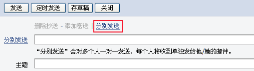当您想发一封邮件给多个人,但又希望对方在收件人地址栏内只能看到他的邮件地址和您这个发送人的地址,让每个接收者都感觉到是您单独发送的邮件时,那么就可以使用下图的“分别发送”这功能。
